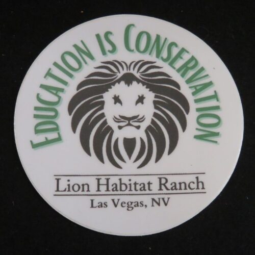 Show your support for the Lion Habitat Ranch and our mission to educate about wildlife conservation with our “Education is Conservation” button. This button is a perfect way to promote awareness and demonstrate your commitment to protecting wildlife.