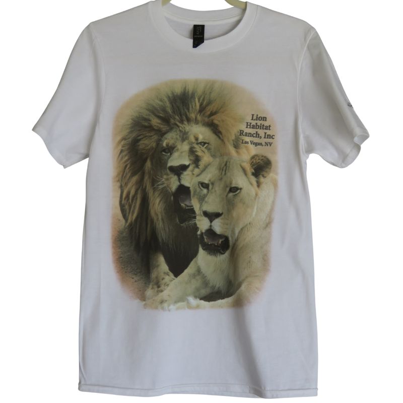 Introducing our exclusive white tee, featuring the iconic Baby Baby and Sugar, some of the original lions who have graced the Lion Habitat Ranch with their majestic presence. This beautifully designed t-shirt captures the essence of these magnificent creatures, making it a must-have for any wildlife enthusiast.