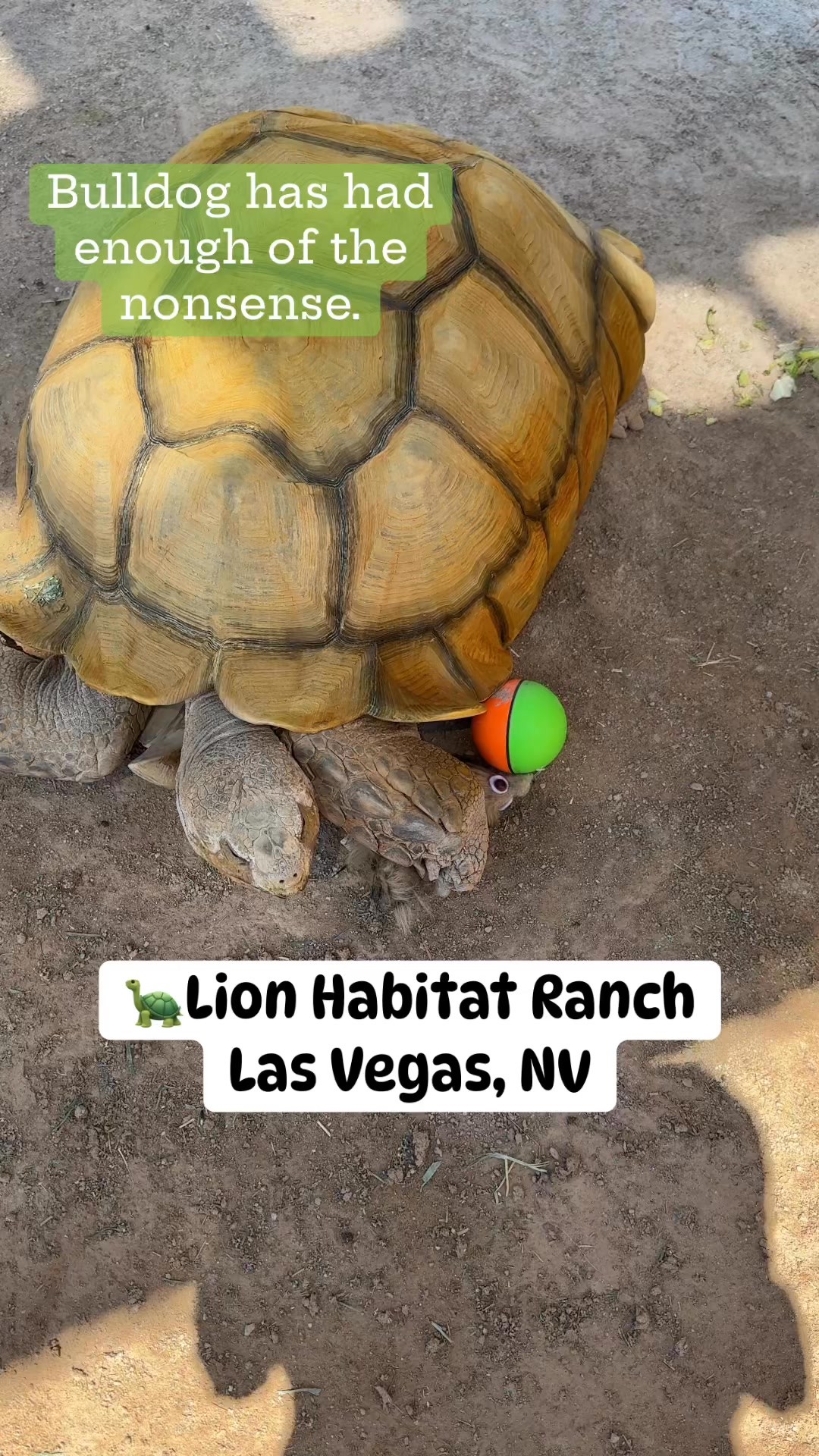 Can tortoises be apex predators? 🤔 Bulldog caught himself a (fake) weasel, proving even a 130 pound tortoise can be a great hunter! This weasel ball has proven to be a fun toy for the tortoises as it rolls around on its own and they love to chase after it! Catch a tortoise chat during your next visit or even add on a tortoise encounter to meet one of these gentle giants up close! We’re open Thursdays-Tuesdays 10am-2pm, last admission at 1pm! 🎟️ lionhabitatranch.org #tortoise #funny #fun #play #turtle #sulcata #animals #thingstodo #family #kids #lasvegas #vegas #henderson #summer ...