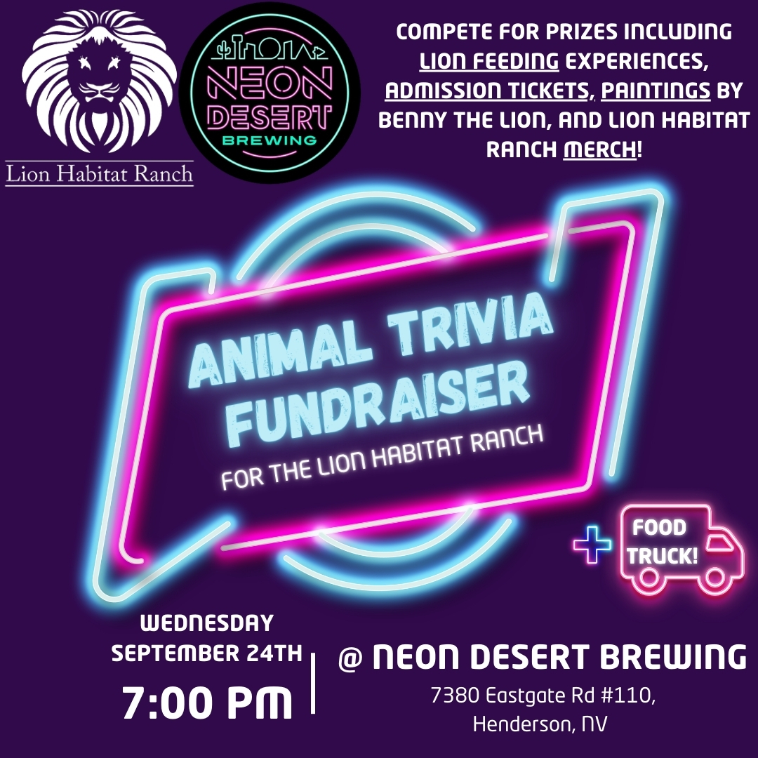 🎤🍻Assemble your team and join us at Neon Desert Brewing for our Lion Habitat Ranch Trivia Night Fundraiser! On Wednesday, September 24th at 7 PM, test your animal knowledge to compete for prizes including:
