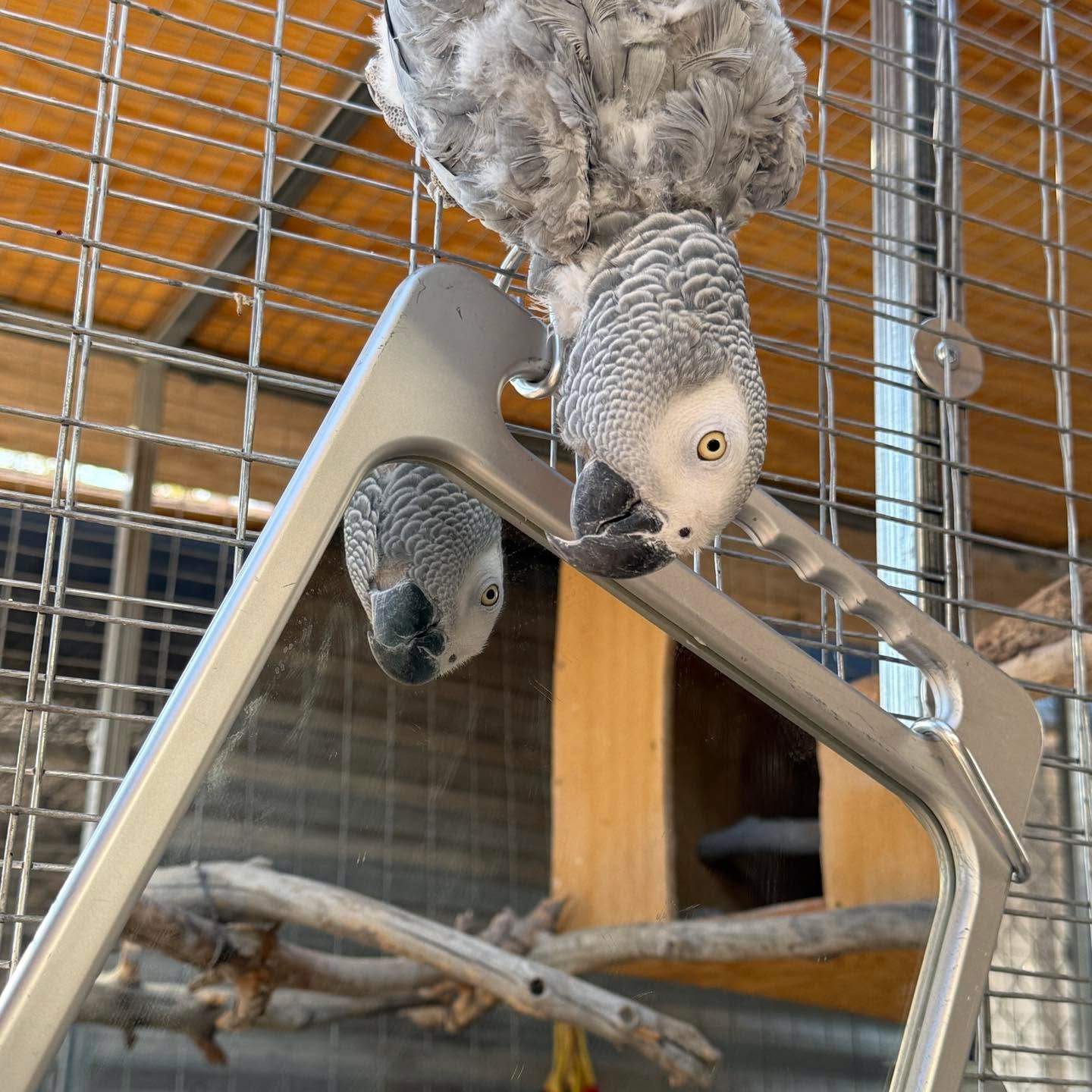 🪞🦜“Are you seeing this cool bird?!” Watson enjoyed her mirror enrichment and was very impressed with her reflection! 🤩